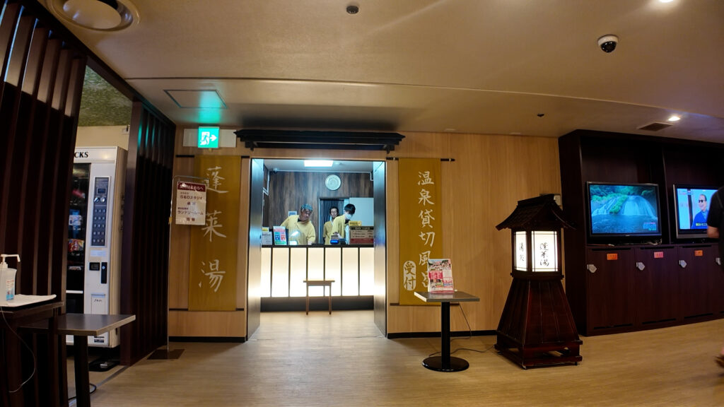 ホテル花巻は全102室、大浴場「花巻満天の湯(2024年リニューアル)」、「花巻の湯」、貸切風呂4つ。3館の中央にあり、施設が最も充実しています。