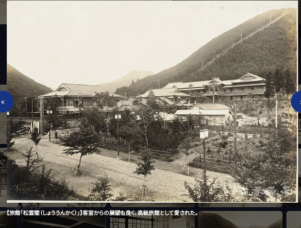 第一号旅館となる花盛館を始め、松雲閣、紅葉館、蓬莱館、千秋閣の旅館群の他、貸し別荘、遊戯場、動物園、テニスコート、プール、そしてスキー場などを完備した総合レジャーランドとして発展しました。