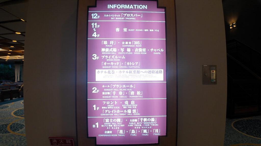 3棟あるホテルですが、一番奥にあるのがホテル紅葉館、中央がホテル花巻、入り口側にあるのがホテル千秋閣、全体では422室、東北最大級の巨大な温泉ホテルとなっています。