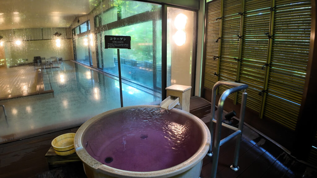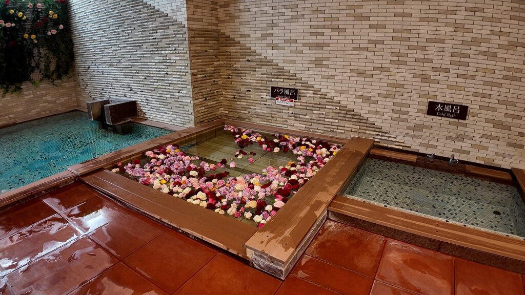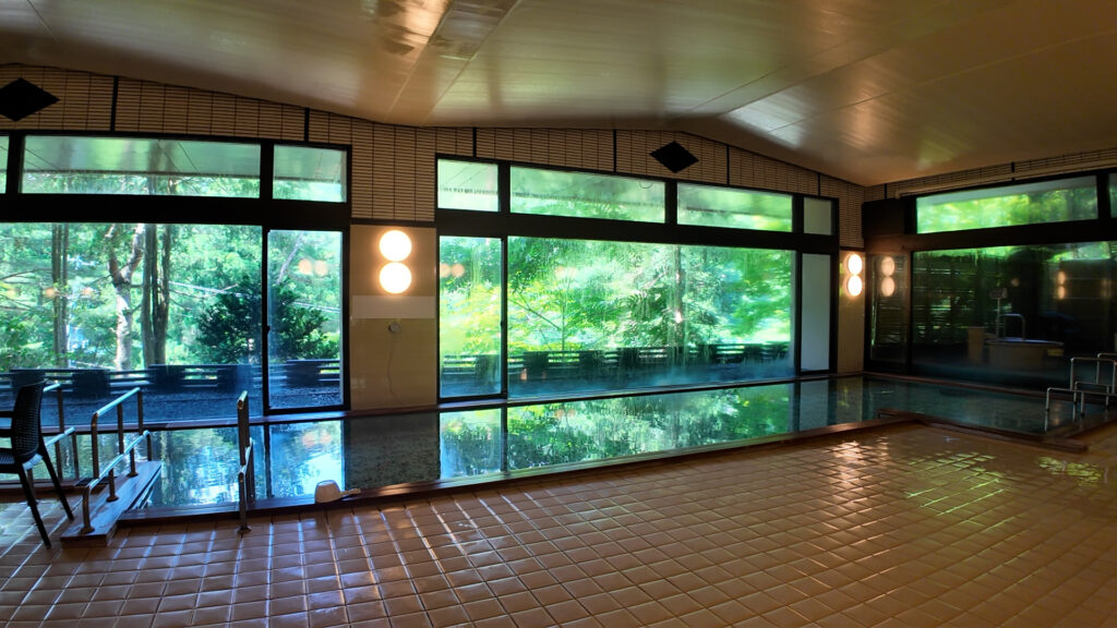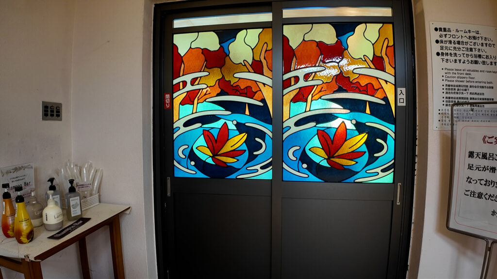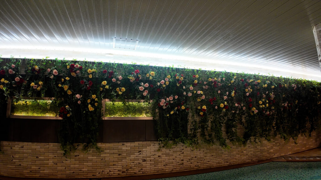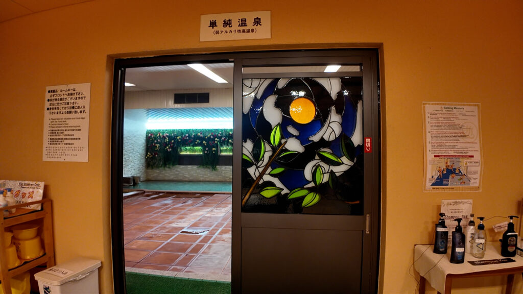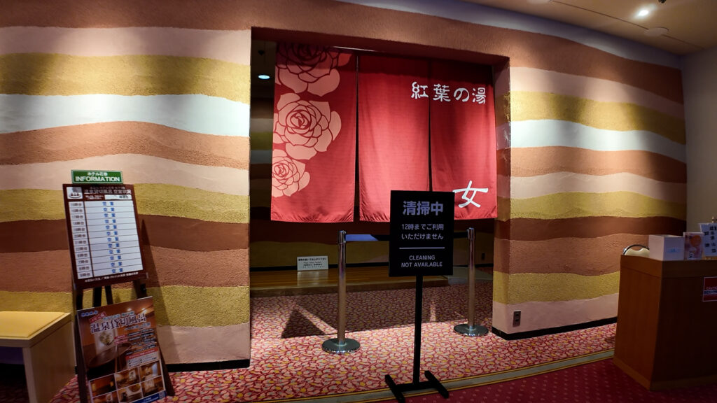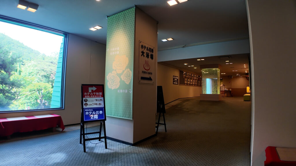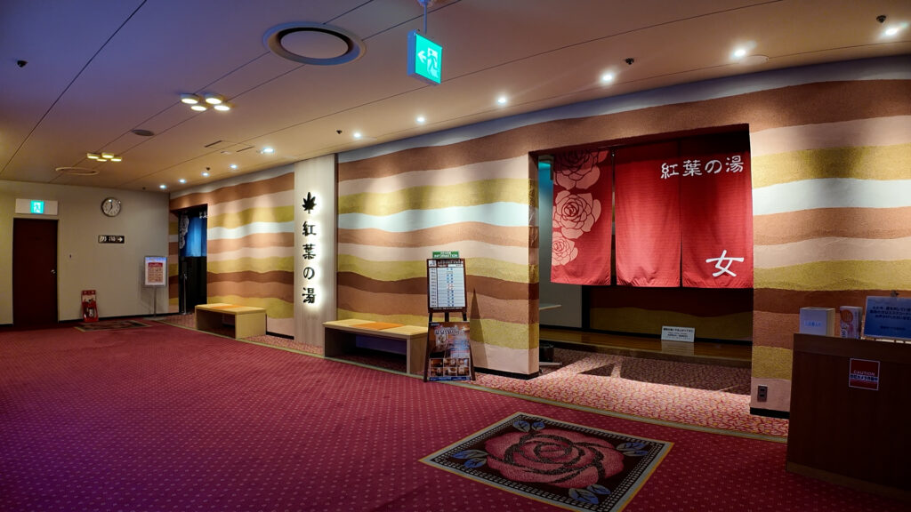 大浴場は「紅葉の湯」。エントランス側のお店には遠いんですが、バラ園や景勝地、釜淵の滝には近いホテルです。