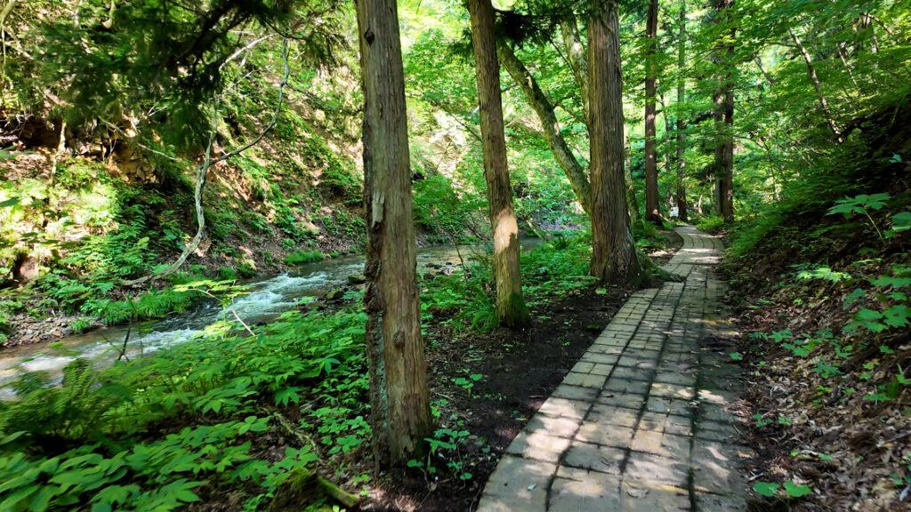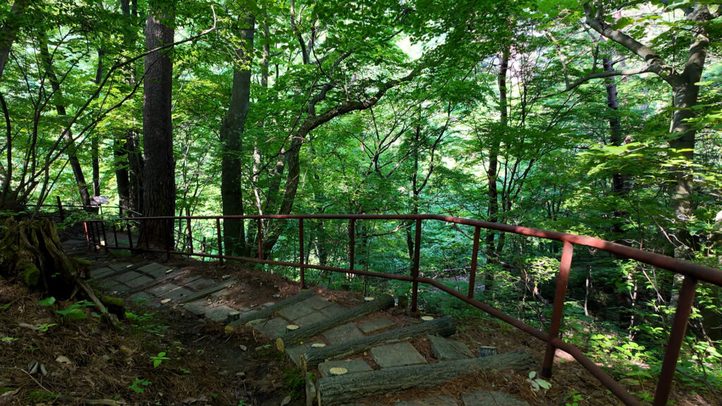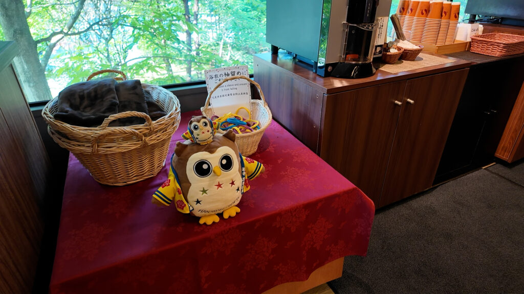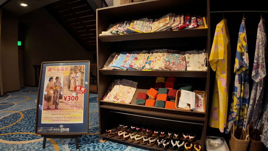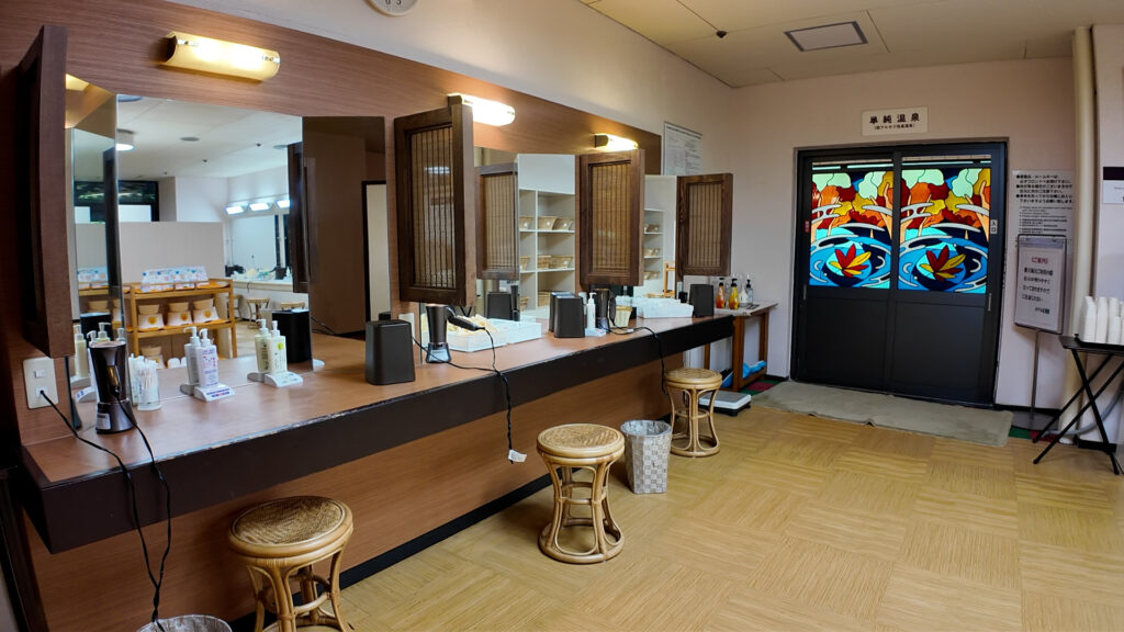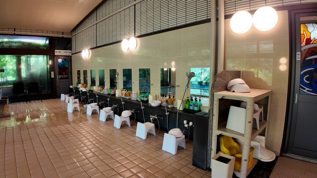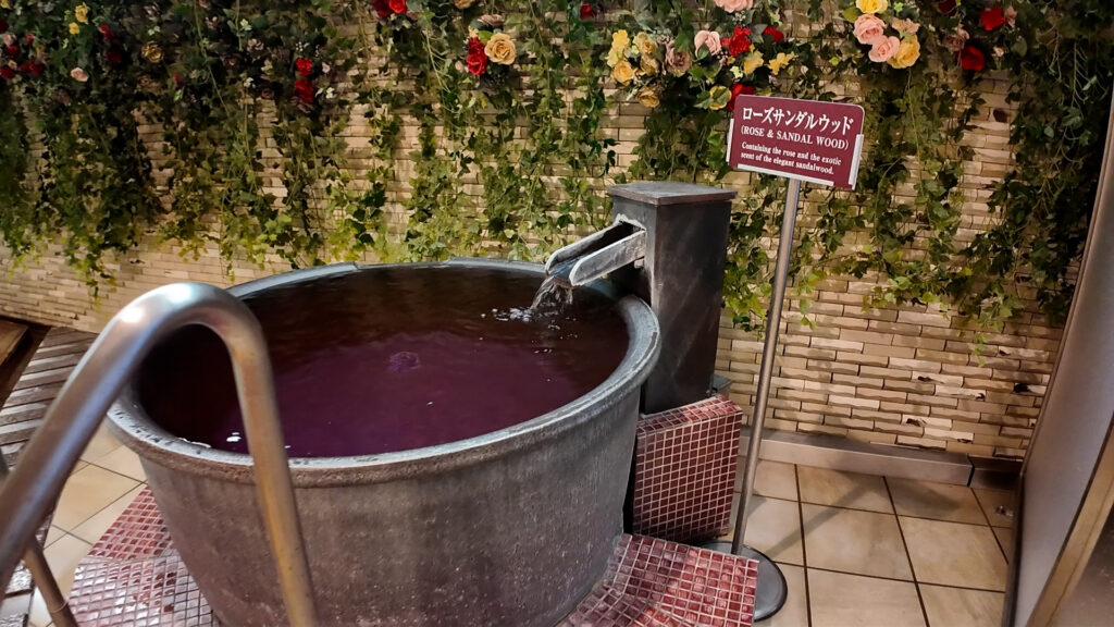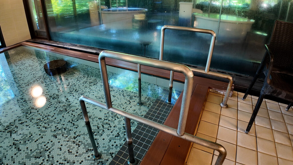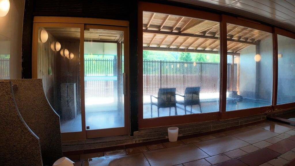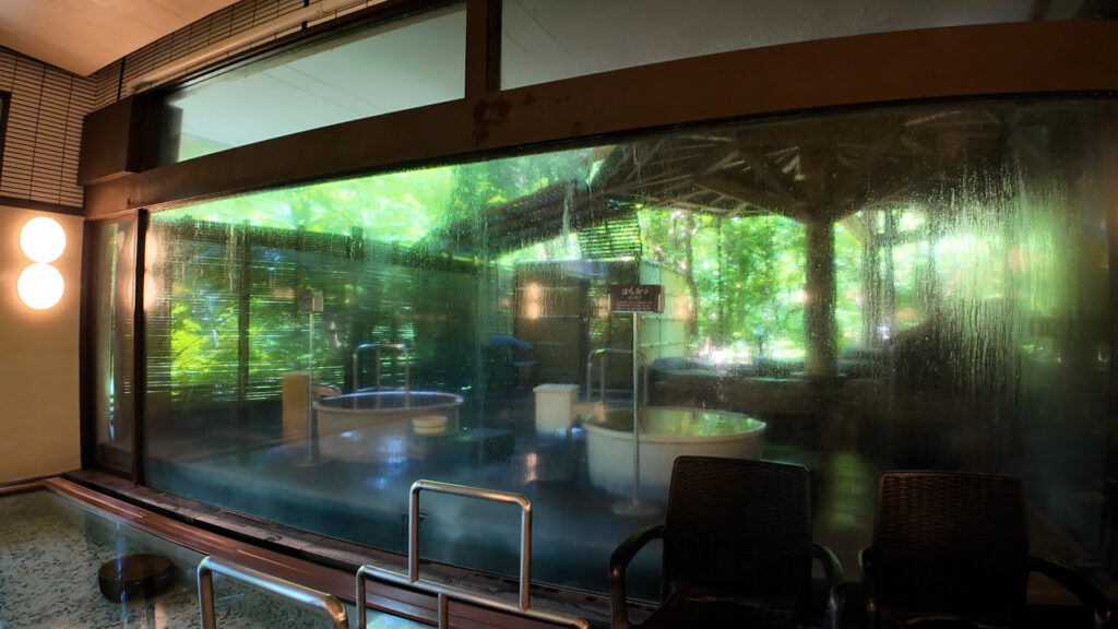 大浴場は「紅葉の湯」。エントランス側のお店には遠いんですが、バラ園や景勝地、釜淵の滝には近いホテルです。