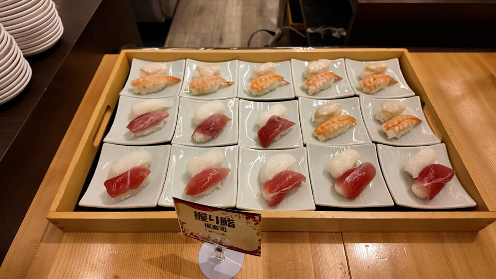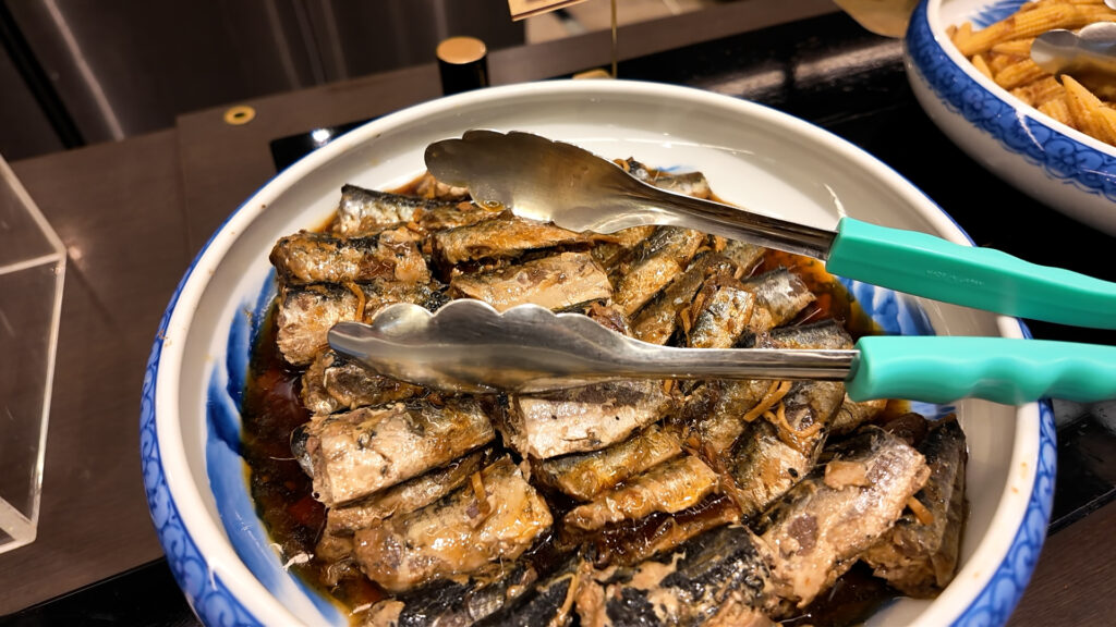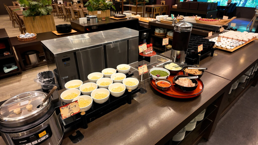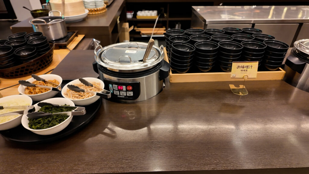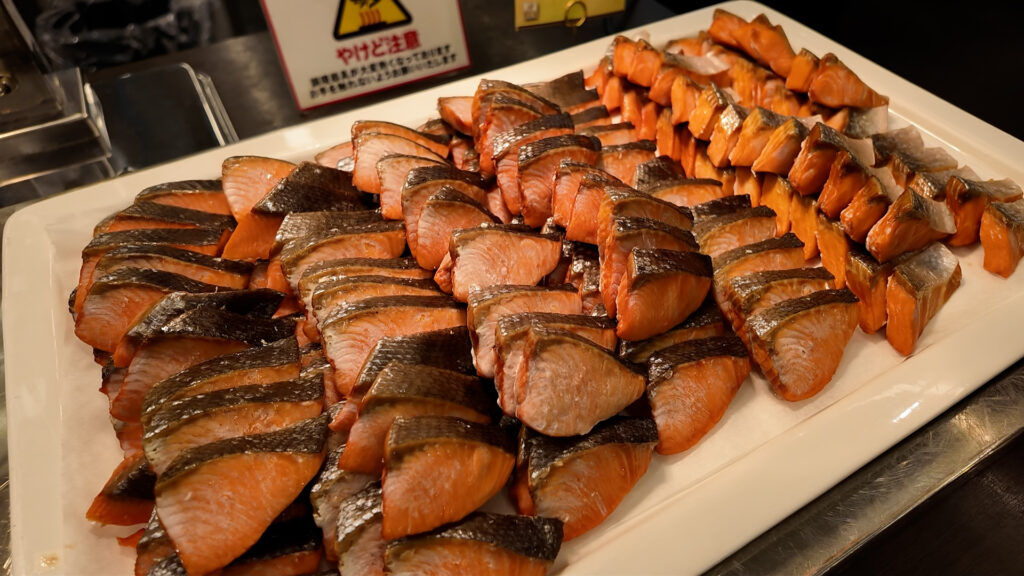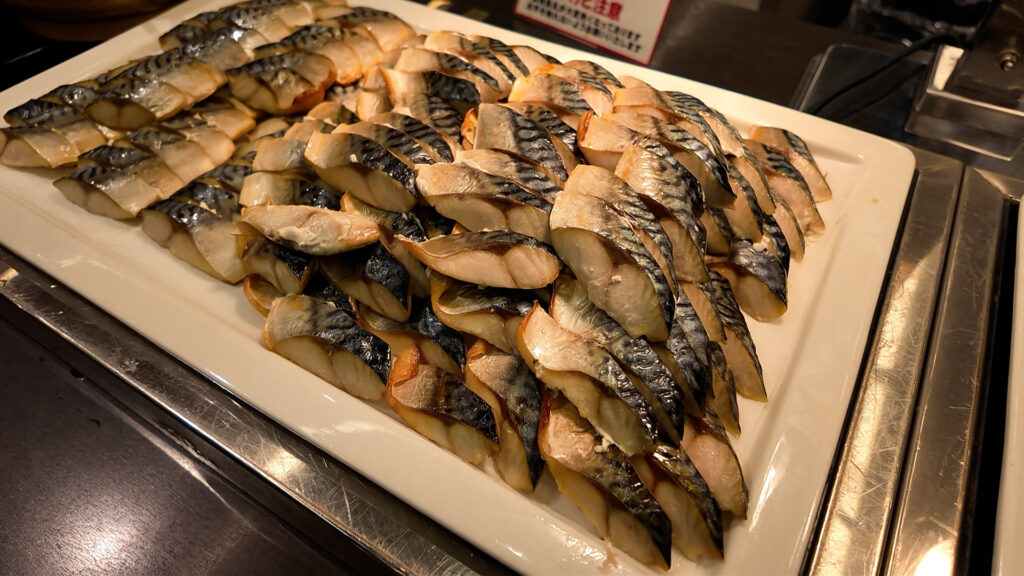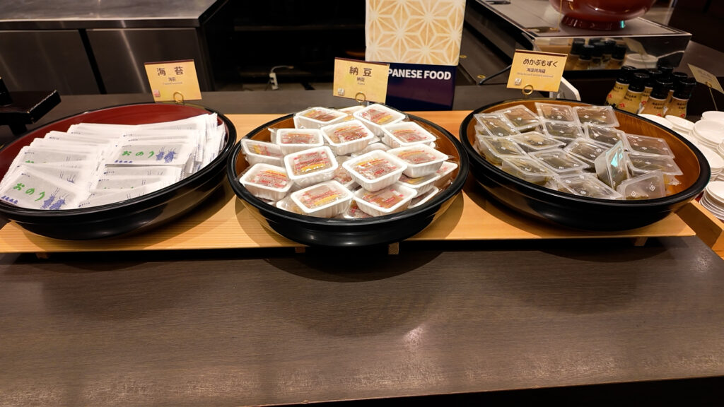 焼き魚や納豆など、朝食の定番メニューが並びます。