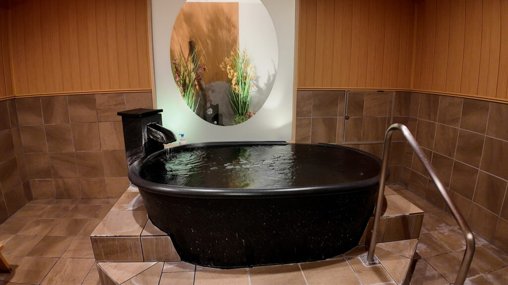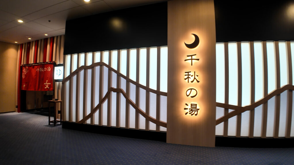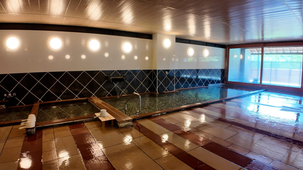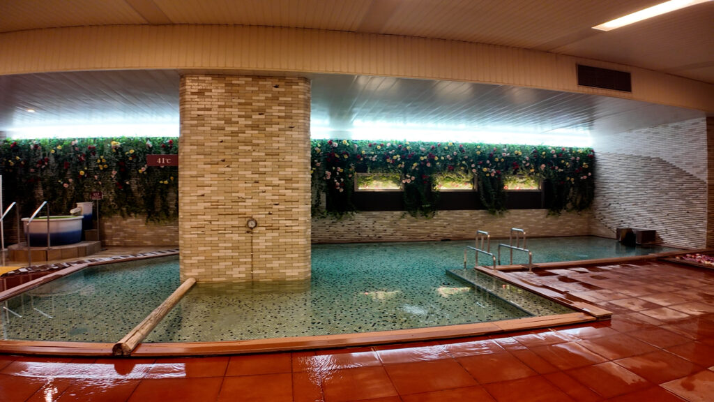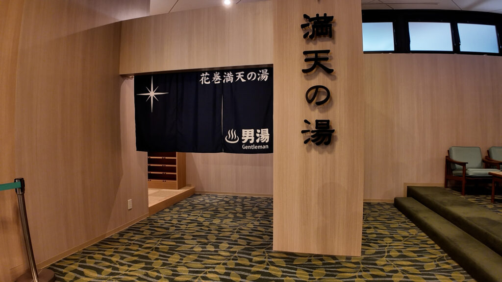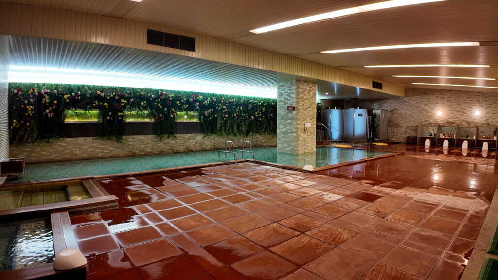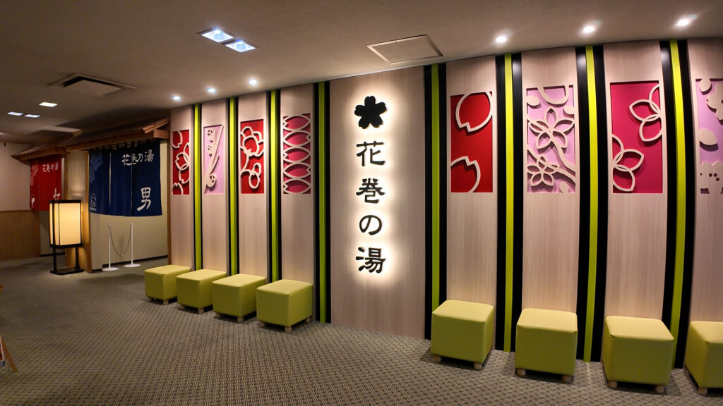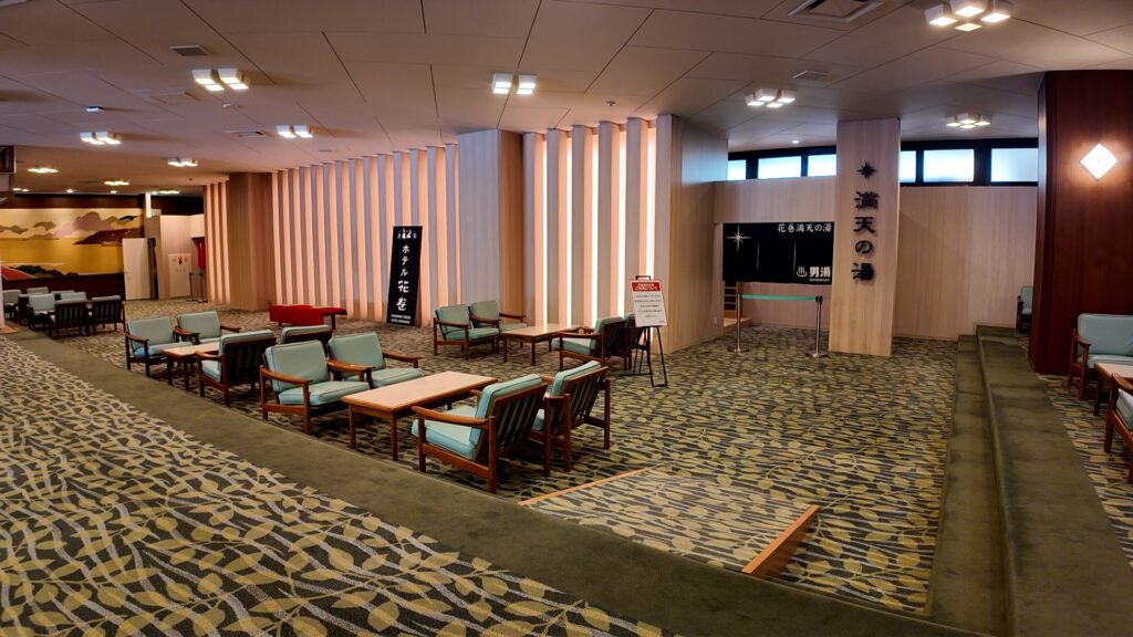 ホテル花巻は全102室、大浴場「花巻満天の湯(2024年リニューアル)」、「花巻の湯」、貸切風呂4つ。3館の中央にあり、施設が最も充実しています。