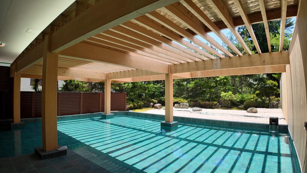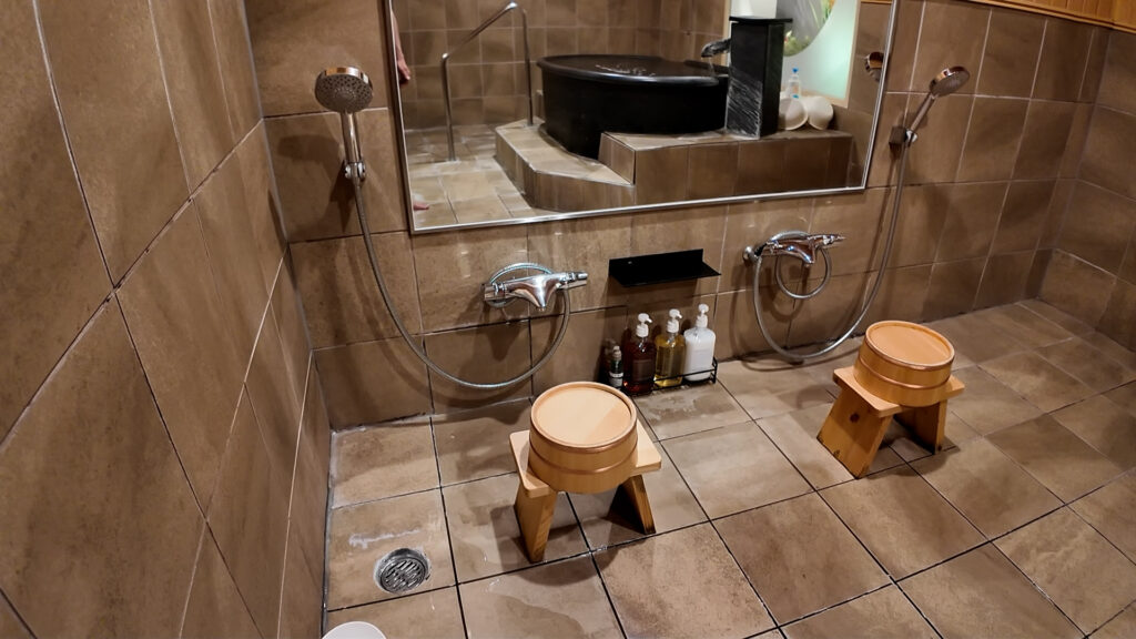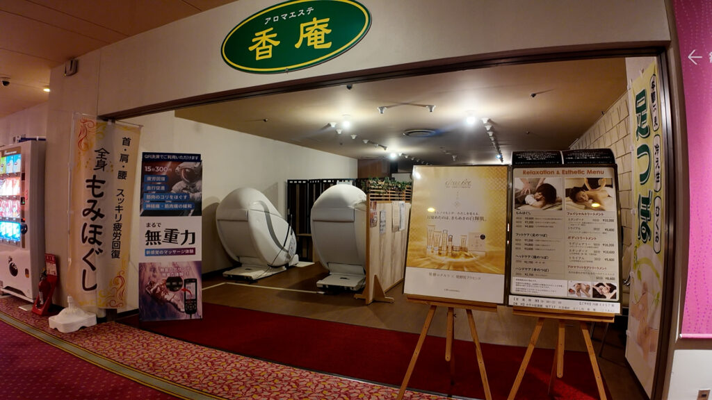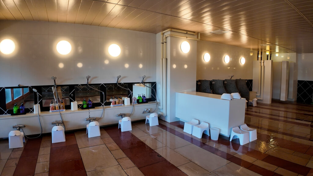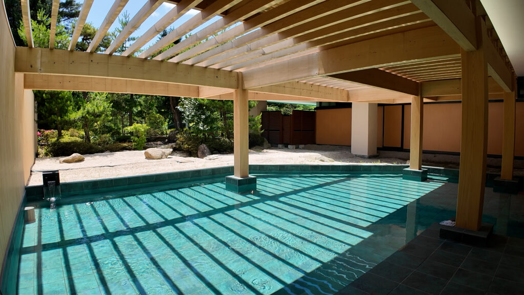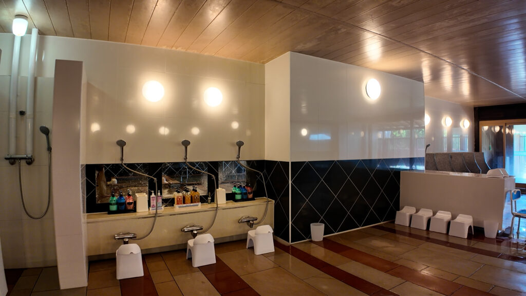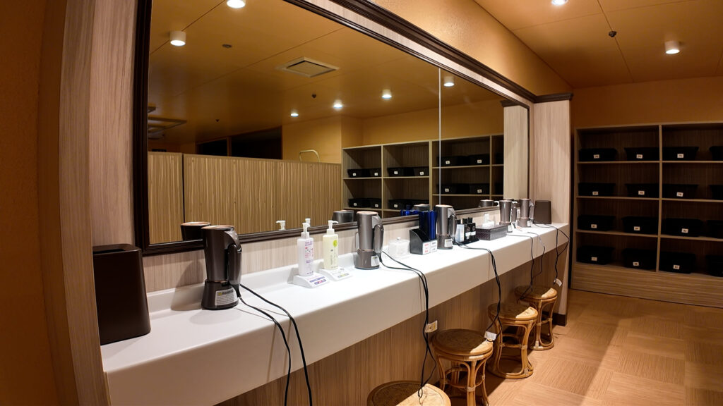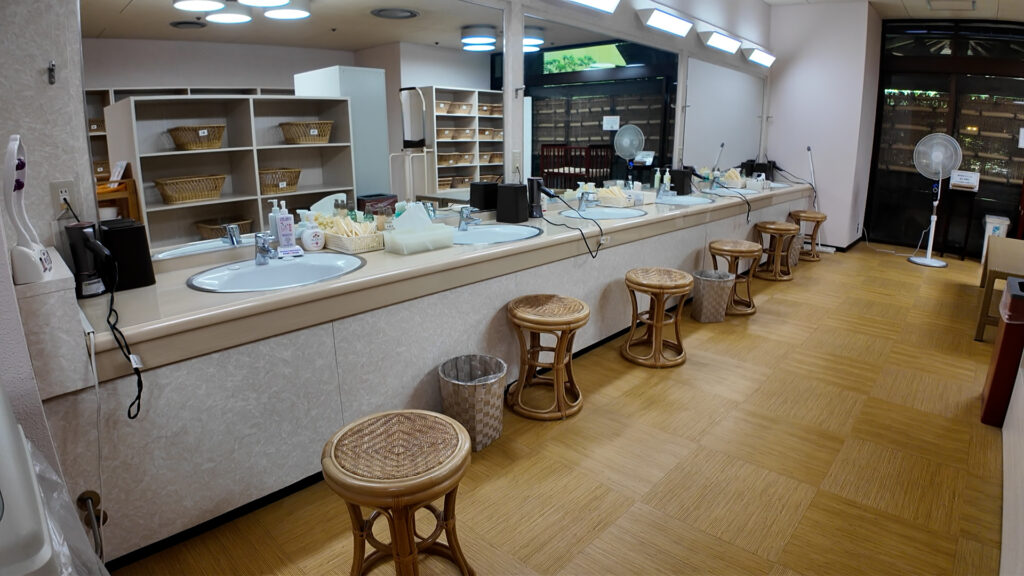 ホテル花巻は全102室、大浴場「花巻満天の湯(2024年リニューアル)」、「花巻の湯」、貸切風呂4つ。3館の中央にあり、施設が最も充実しています。
