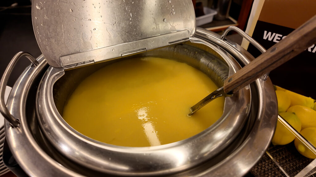 朝早くからフタッフの方が準備をしています。朝食も素晴らしいバイキング、すべてお見せします。