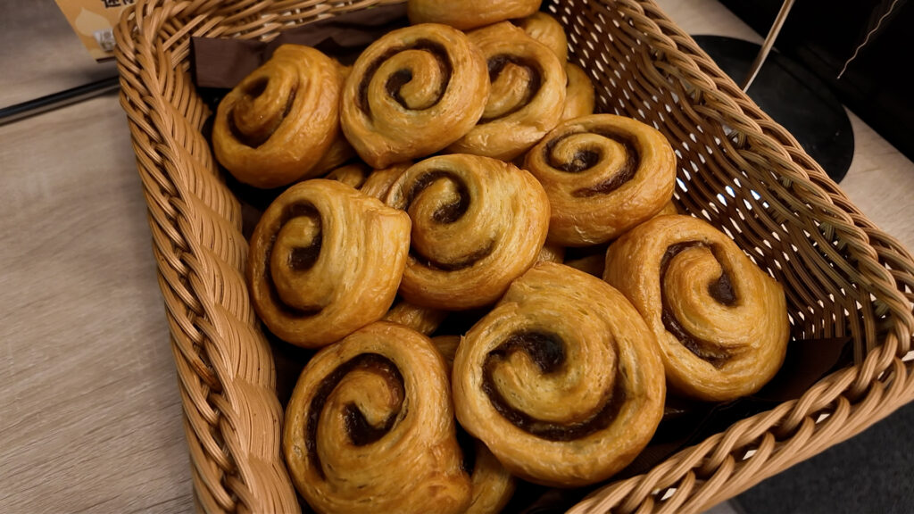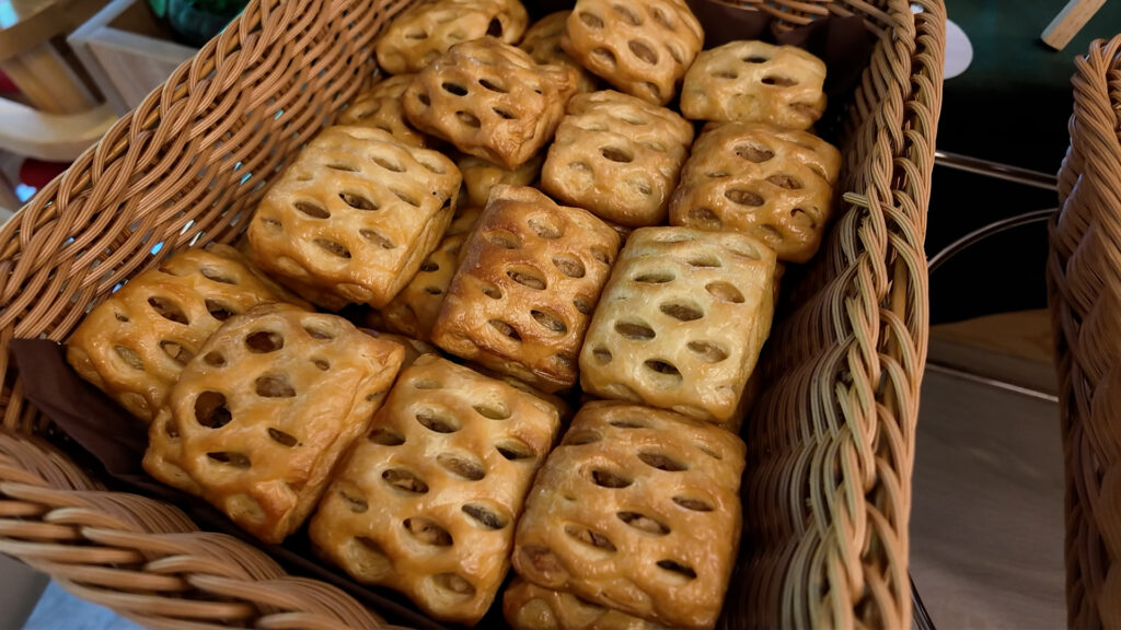 朝食の目玉は、こちらのパンコーナー。目の前のオーブンで、焼きたてをいただけます(^^♪