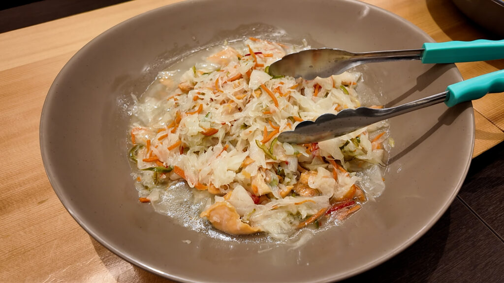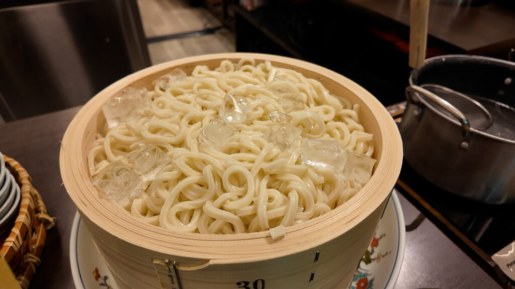 かき玉うどん 自分で茹でて〜スープを入れましょう♪