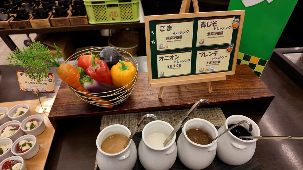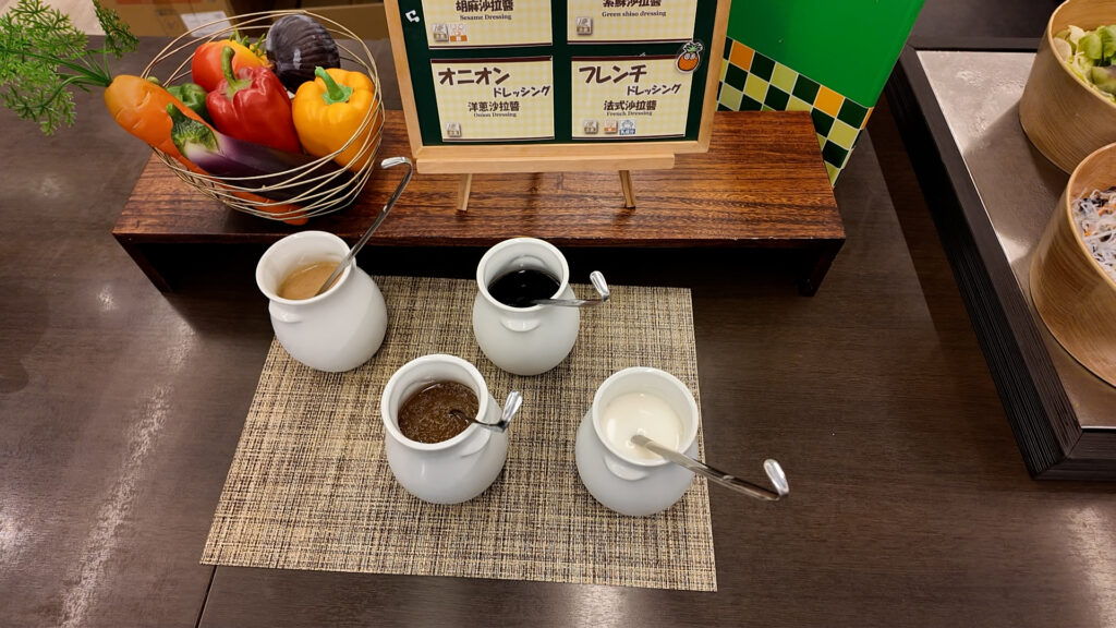 ドレッシングいろいろ(ごま、青じそ、オニオン、フレンチ)
