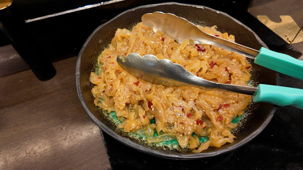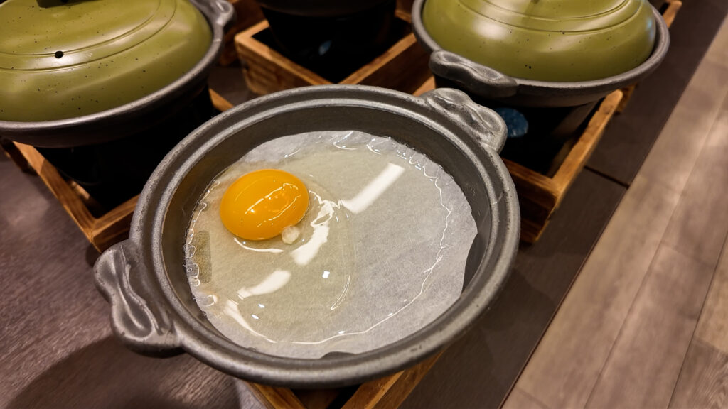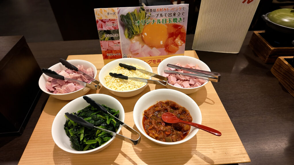 目玉焼きはコンロで焼きたてをいただけます♪ トッピングも選べます♪