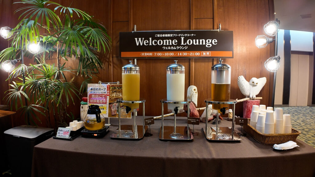 こちらのラウンジでは、朝7時から夜9時まで、ドリンクなどをいただけます。