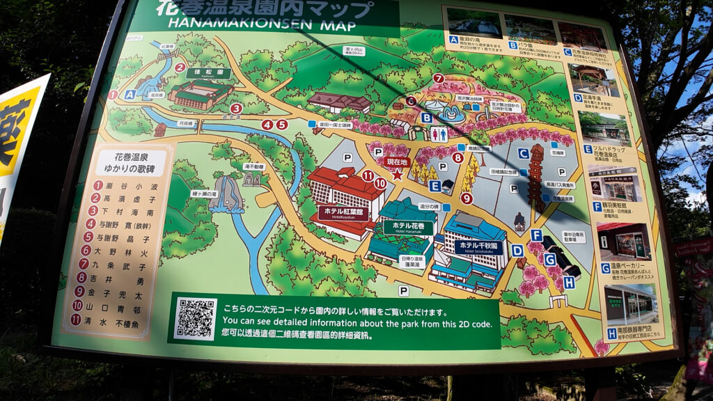 花巻温泉はグループだけで1つの温泉街を形成している巨大温泉です。周囲にある、バラ園やお店などは後ほどご紹介します。