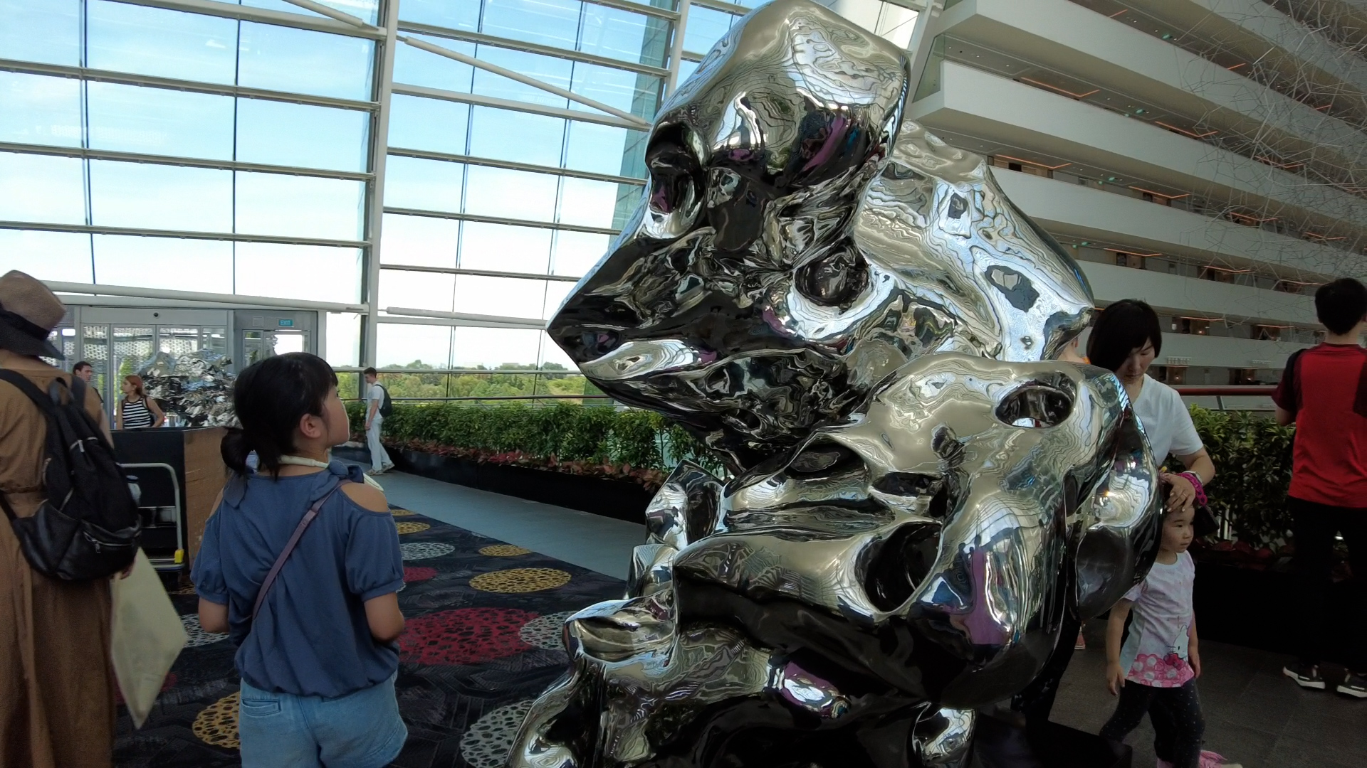 通路の途中でホテルを見てみます。右側の窓越しにガーデンズ・バイ・ザ・ベイが見えてきました^^