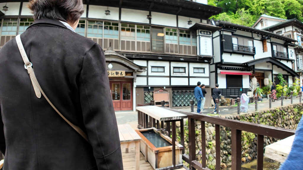 ジブリ映画「千と千尋の神隠し」のモデルとも言われる赤い欄干と木造の橋、そして本館のコントラストは、圧倒的な佇まいで、銀山温泉の中でもひときわ目立っています。
