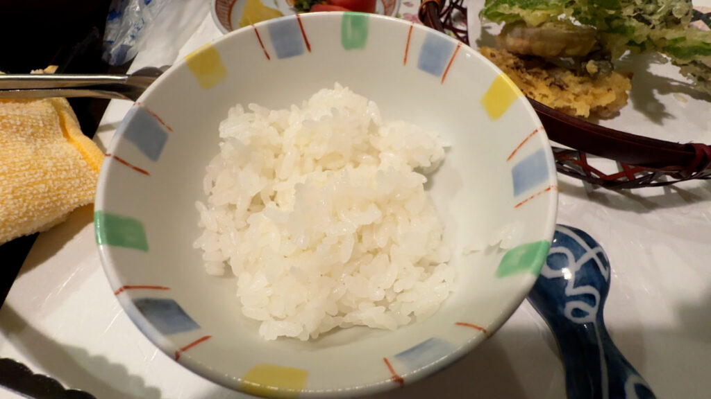 銀山温泉名物、おしんめし。白米に大根と大根の葉を入れて、塩味になっています。