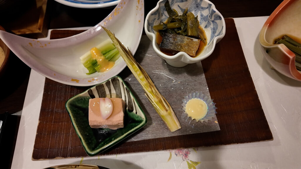 【前菜】ウドにしん、焼き細竹、さくら豆腐、うるい