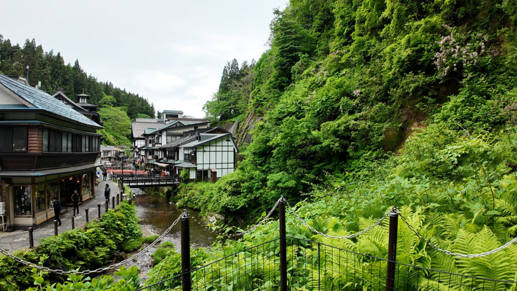 銀山温泉では四季折々の景色が見られ、特に冬が有名ですが、春は桜、夏は緑、秋は紅葉と季節ごとに違った風景がみられるのも魅力の一つです。