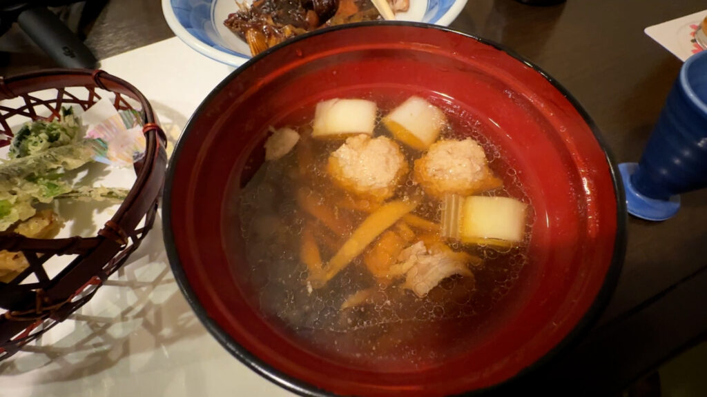 【お椀】鴨汁 鶏のつくね入りで、いい出汁が出ています♪