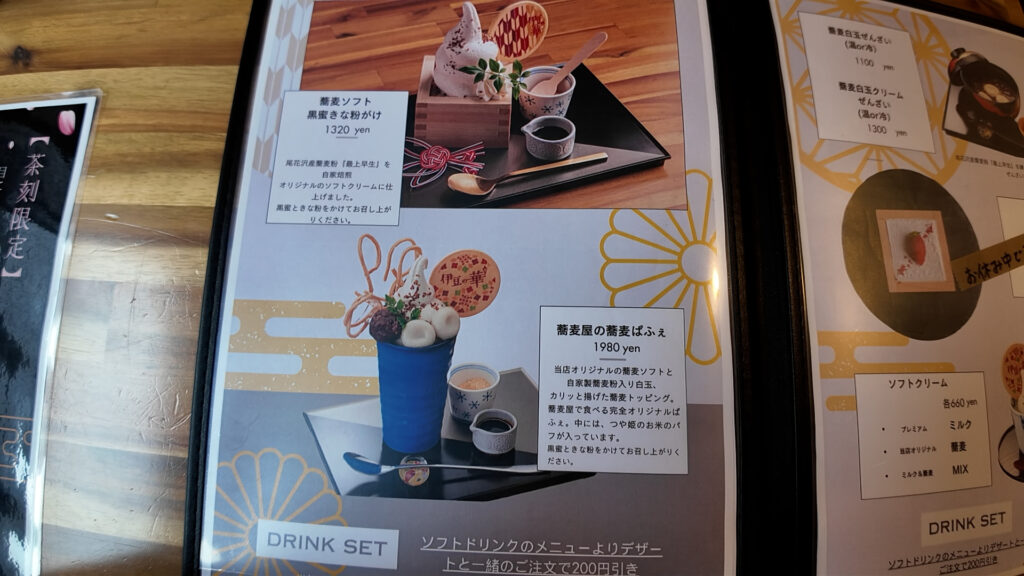昼間はスイーツ中心ですが、お蕎麦もありました。