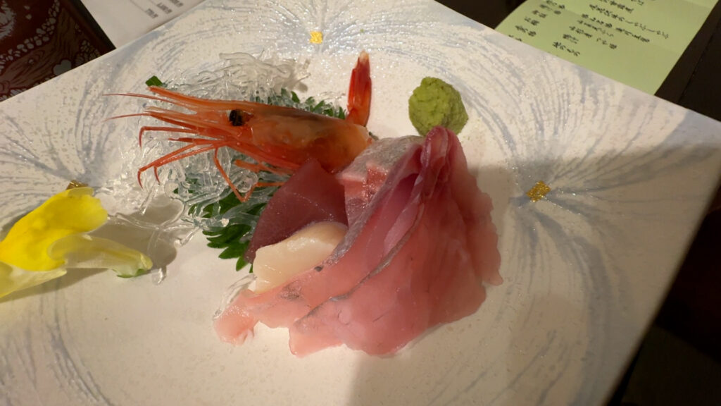 【お造り】鯉のあらい、ホタテ、マグロ、カンパチ、エビ