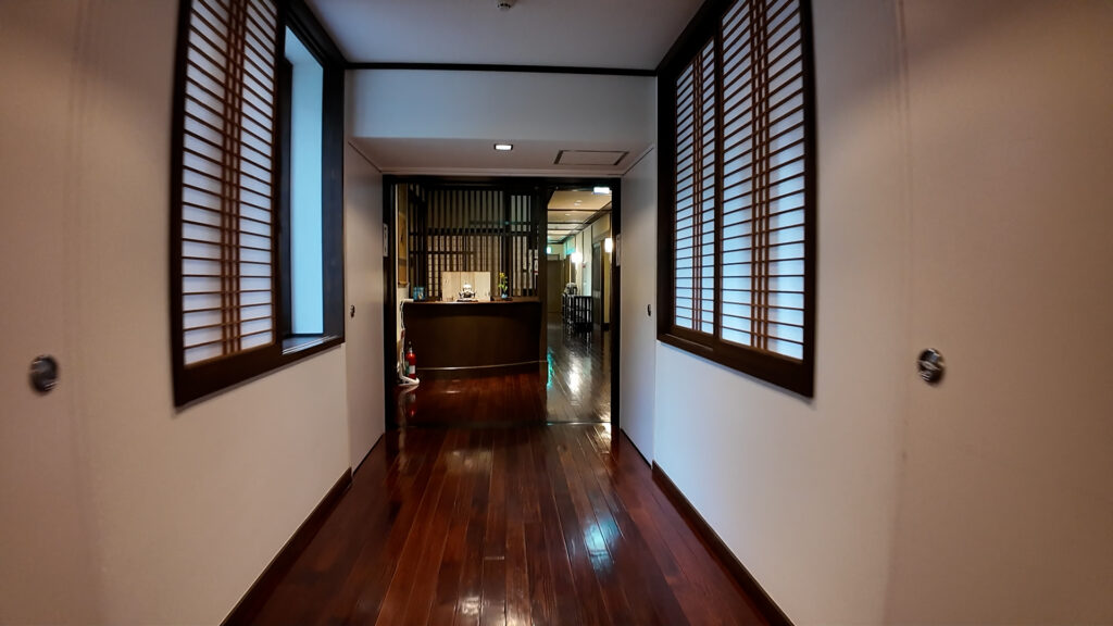 ロビーの奥の廊下には橋がありますが、こちらは能登屋のシンボルである目の前の橋のイメージであるとともに、段差の解消という役目もあるようです。