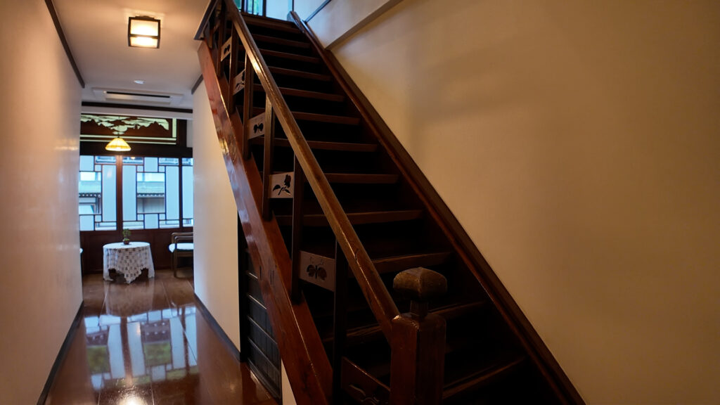 本館にも別館にもエレベータはありますが、こちらのレトロな階段もとても素敵ですよね♪
