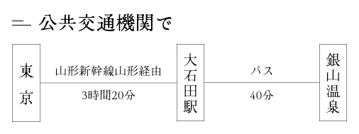 JR:山形新幹線経由 奥羽本線大石田駅より車で約40分(送迎あり、要予約)