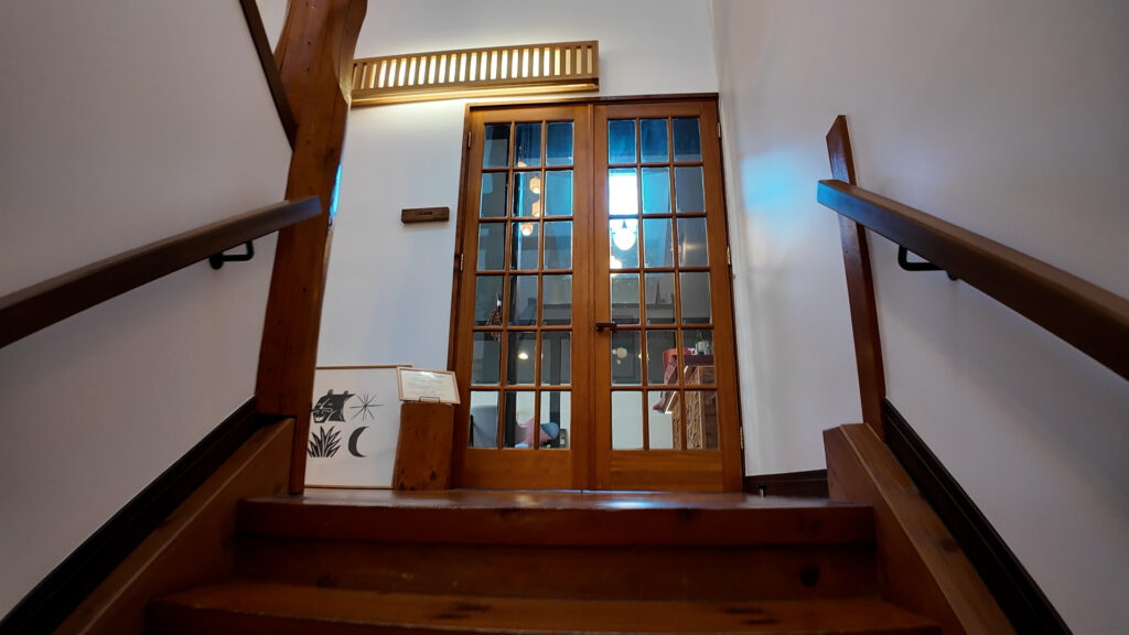 こちらの階段を登るとラウンジがあります。なお、エレベーターはありません。