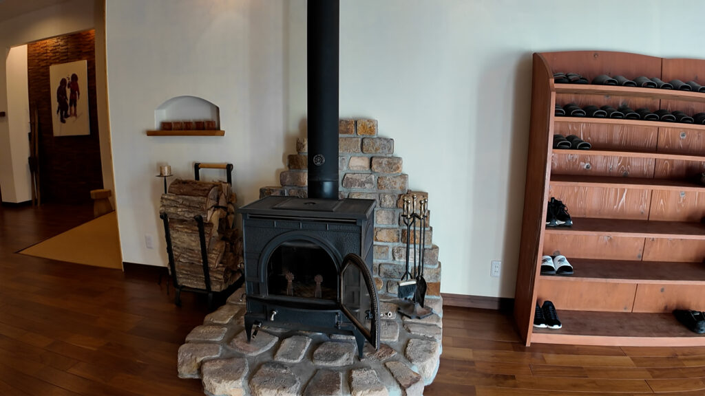 こちらの暖炉には、冬には実際に薪が焚べられます。