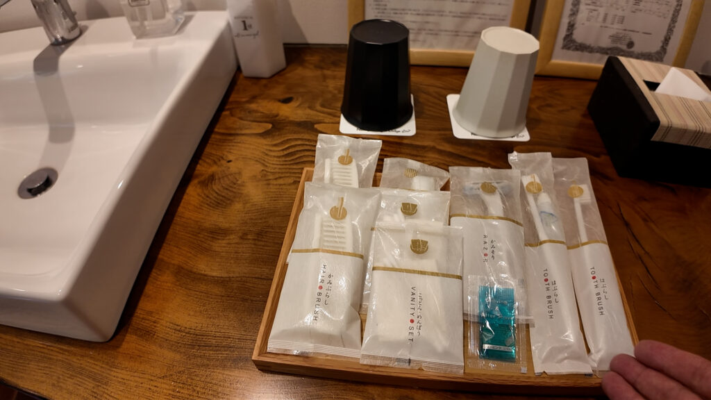 アメニティは歯ブラシ、髭剃り、クシ、コットンセットなど充実。Panasonicのドライヤー