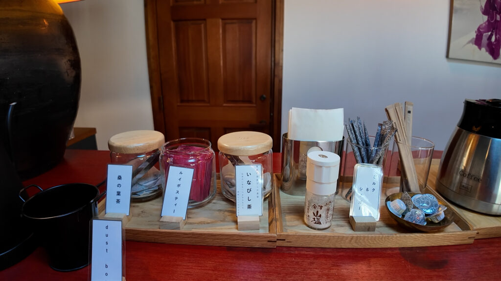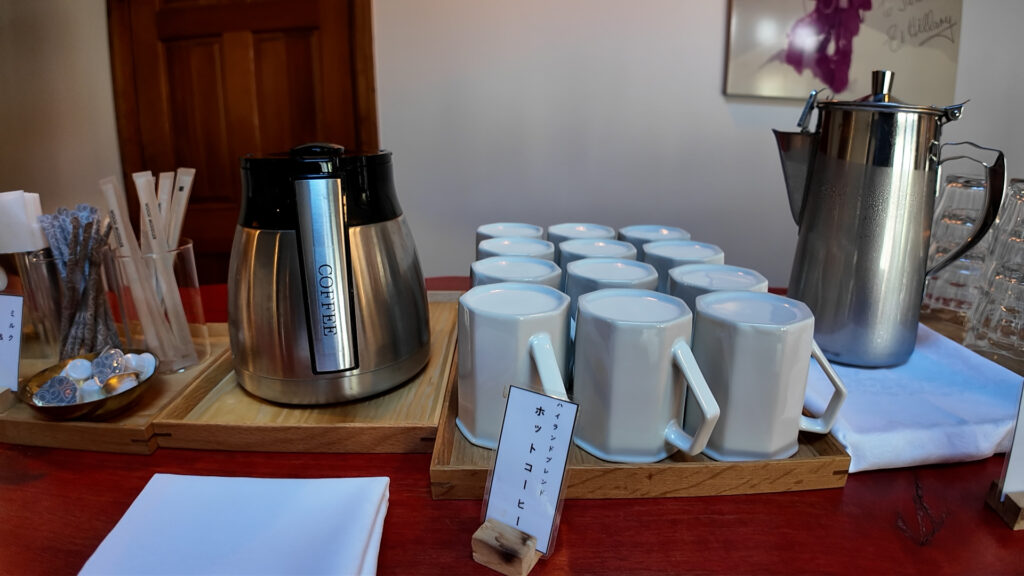 朝のラウンジはコーヒーとお茶が用意されていました。