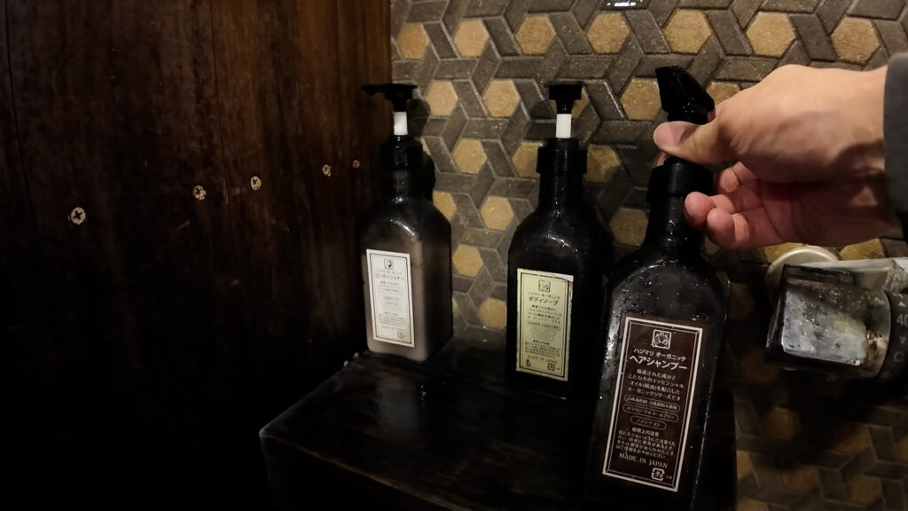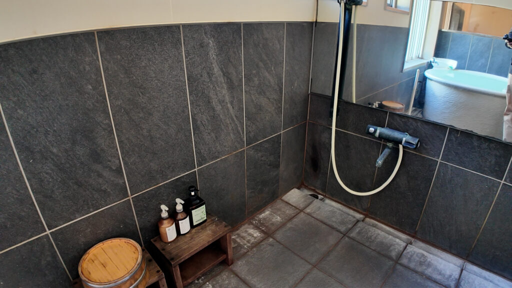 洗い場があります。シャンプー類はLEAF&BOTANICS(国産ブランド)でした。