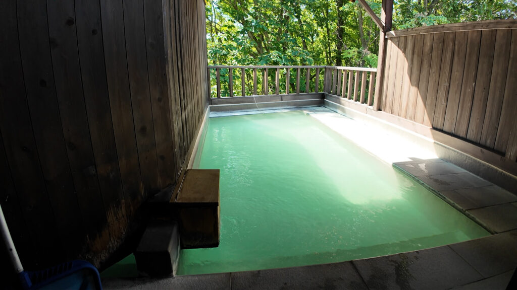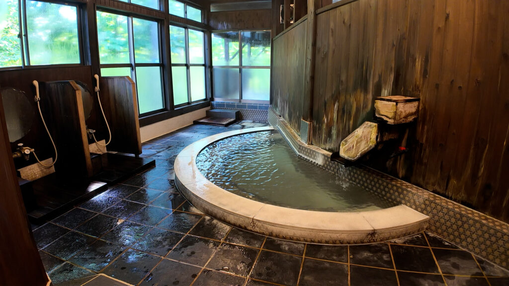 お湯は薄濁りの硫黄泉、メタケイ酸も豊富で、入った感じではツルツルするお湯でした。