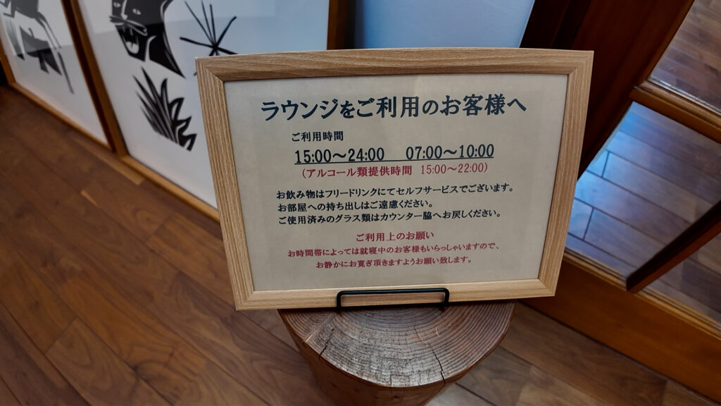 宿泊者が利用できるラウンジは、アルコールを含めフリードリンク