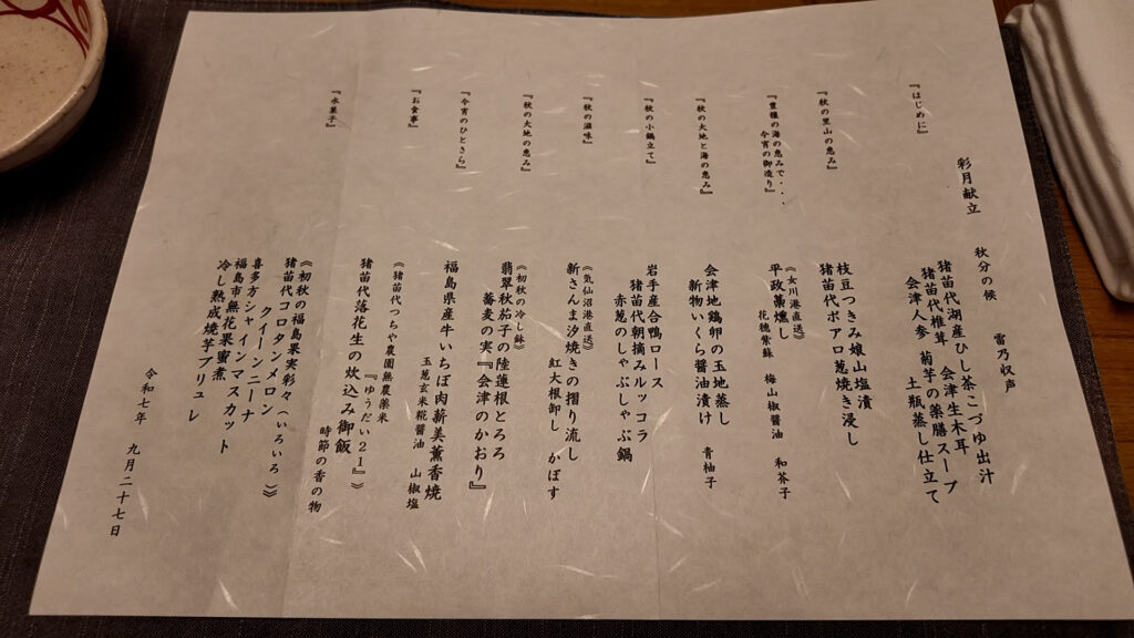 文字がたくさんのメニューは食材が一つ一つ丁寧に紹介されていて、まるで詩をみているようです。