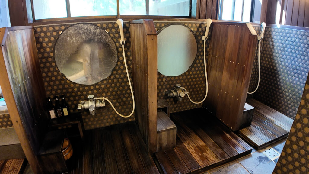 男湯と少し形が違っていて、女湯はさらに広くなっていますね。