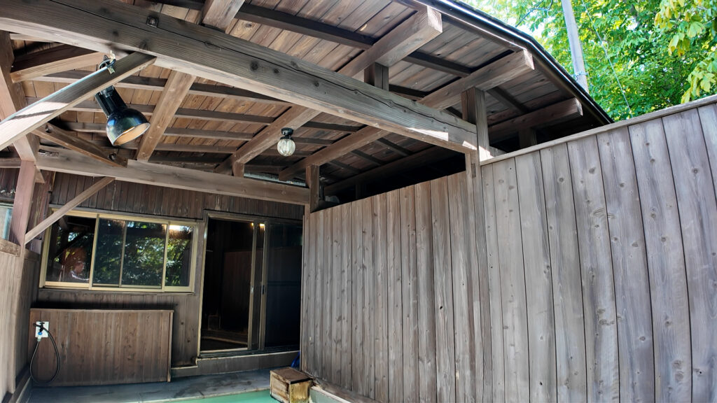 木造りのロッジ風の雰囲気はほぼ同様ですが、男湯に比べると若干広い湯舟です。