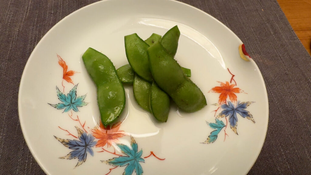 枝豆を山塩に漬けたもの、普通の塩より塩味が抑えられています。
