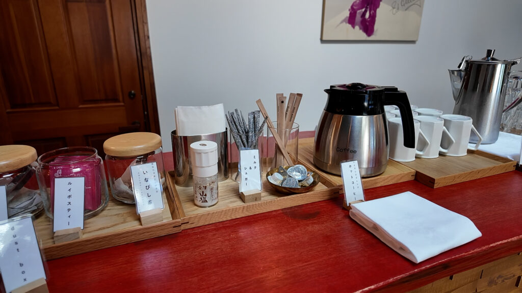 朝のラウンジはコーヒーとお茶が用意されていました。
