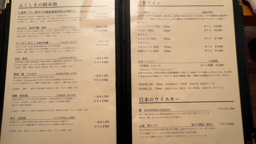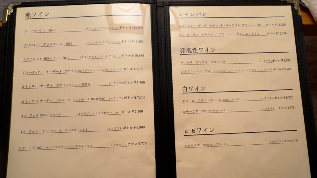 文字がたくさんのメニューは食材が一つ一つ丁寧に紹介されていて、まるで詩をみているようです。