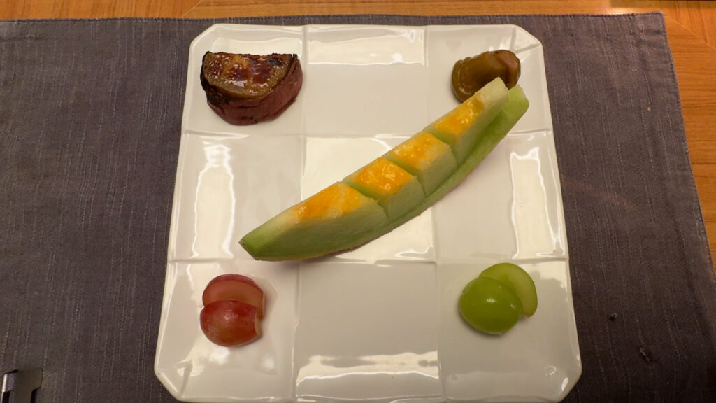 【水菓子】初秋の福島果実いろいろ 猪苗代コロタンメロン「クイーンニーナ」、喜多方シャインマスカット、福島市無花果蜜煮、冷し熟成焼き芋ブリュレ