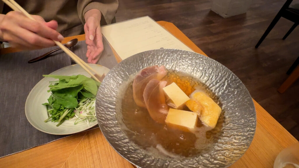 【秋の小鍋立て】岩手産合鴨ロース 猪苗代朝摘みルッコラ、赤葱のしゃぶしゃぶ鍋