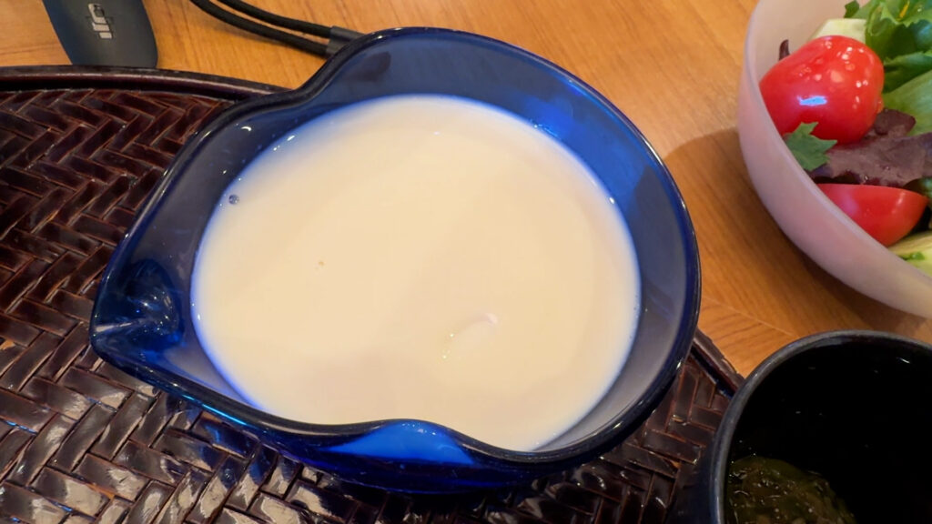 会津産大豆豆乳の自家製豆腐 会津山塩とオリーブオイルでいただきます。