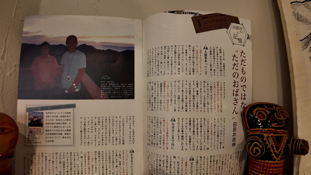 七大陸の最高峰登頂を成し遂げた田部井さんは、この場所で世界中から日本を訪れた登山家たちと交流していたそうです。