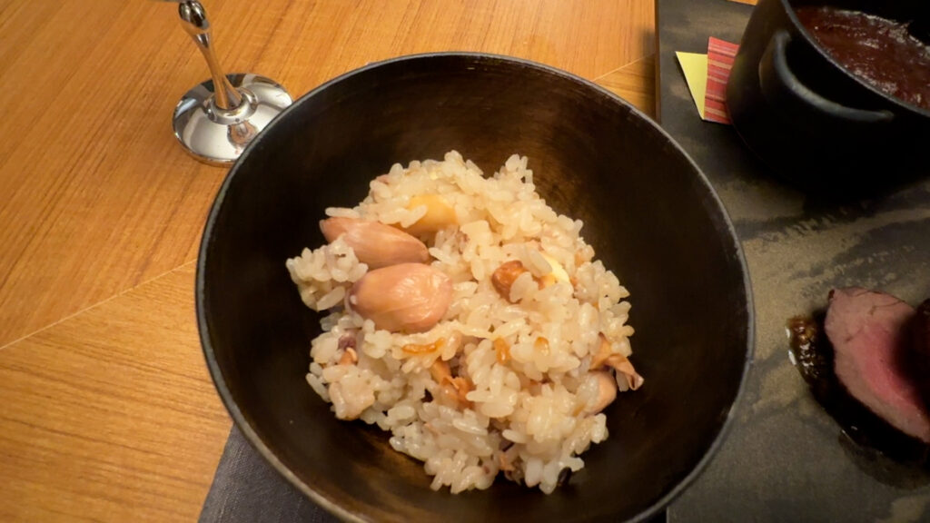 【お食事】猪苗代つちや農園無農薬米「ゆうだい21」 猪苗代落花生の炊き込みご飯 時節の香の物