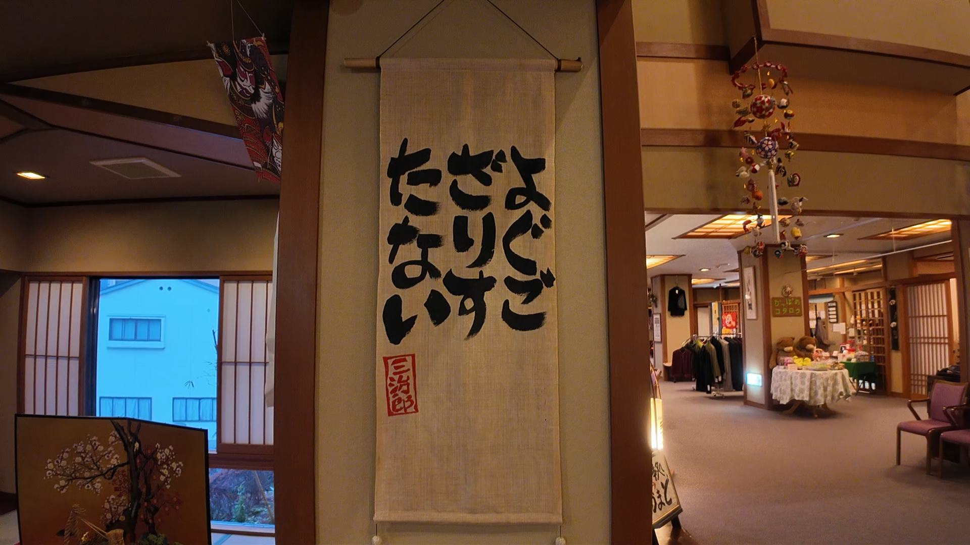 お正月の飾りがされた、和の重厚なエントランスから、館内に入ってみましょう。